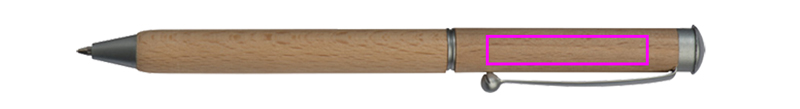 Sukamojo mechanizmo medinis tušinukas su mėlynu metaliniu užpildu ir mediniu dėklu. Jūsų logotipas išgraviruotas po klipu.