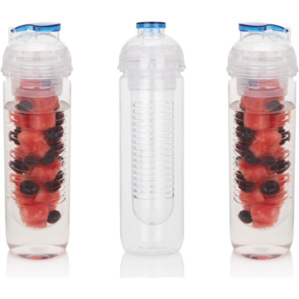 500 ml Tritan buteliukas su vaisių užpilu. Įpilkite į vandenį šviežių vaisių į infuzijos skyrių. Infuzijos skyrius taip pat gali būti naudojamas vandeniui atšaldyti pridedant ledo kubelių.