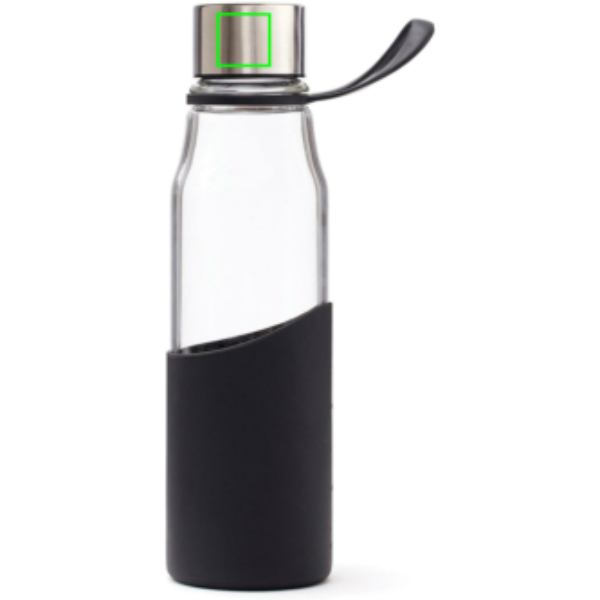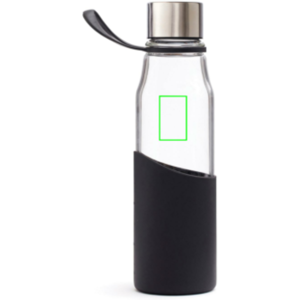 Tvarkingas stiklinis vandens butelis su silikonine rankove. Rankovė suteikia jums gerą sukibimą ir apsaugo buteliuką nuo išorinio smūgio. Paprastas ir stilingas dizainas. Butelis pagamintas iš borosilikatinio stiklo, tokio stiklo, kuris yra atsparesnis šiluminiam smūgiui nei paprastas stiklas. Borosilikatas yra labai patvari ir kokybiška medžiaga, kuri patvari ir atlaiko daugumą smūgių.