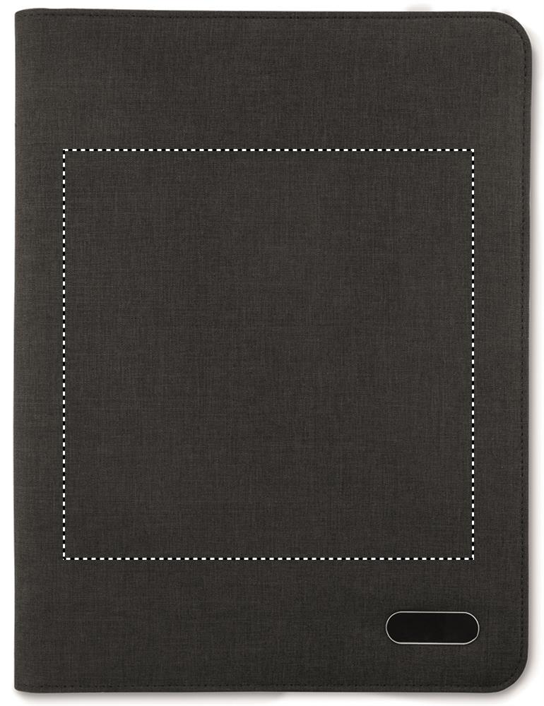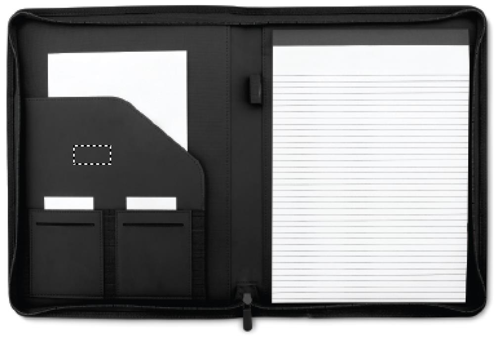 A4 konferenču mape no divu toņu poliestera. Rāvējslēdzējs. 20 līniju lappušu piezīmju grāmatiņa. 3 nodalījumi. Pildspalvu turētājs.