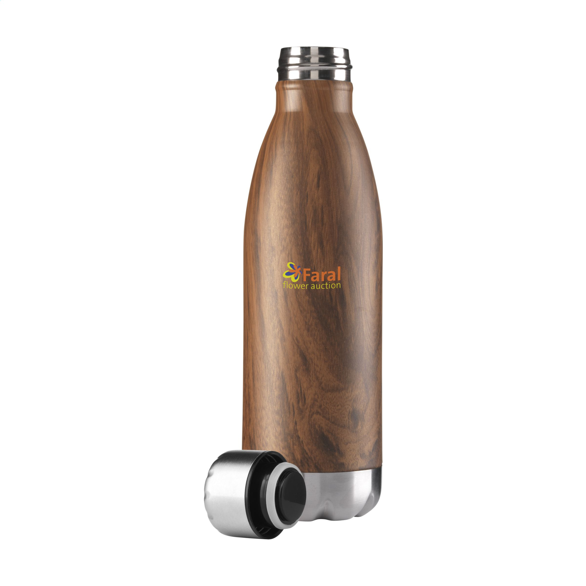 Dubultsienu, ar vakuumizolāciju, nerūsējošā tērauda ūdens pudele. Ar necaurlaidīgu skrūvējamu augšdaļu. Šim elegantajam modelim ir uzkrītošs, pievilcīgs augšējais slānis ar koka slāņa rakstu. Piemērots aukstā vai karstā ūdens temperatūras uzturēšanai. Tilpums 500 ml. Katra prece ir atsevišķi iepakota.