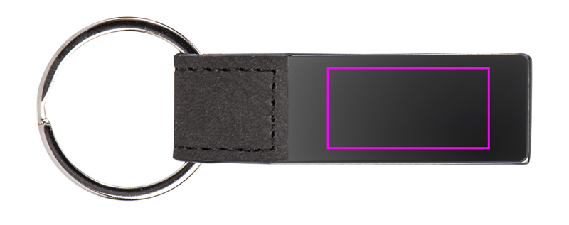 Брелок из комбинации металла и искусственной кожи с кольцом для ключей. Ваш логотип гравируется на металлической поверхности.