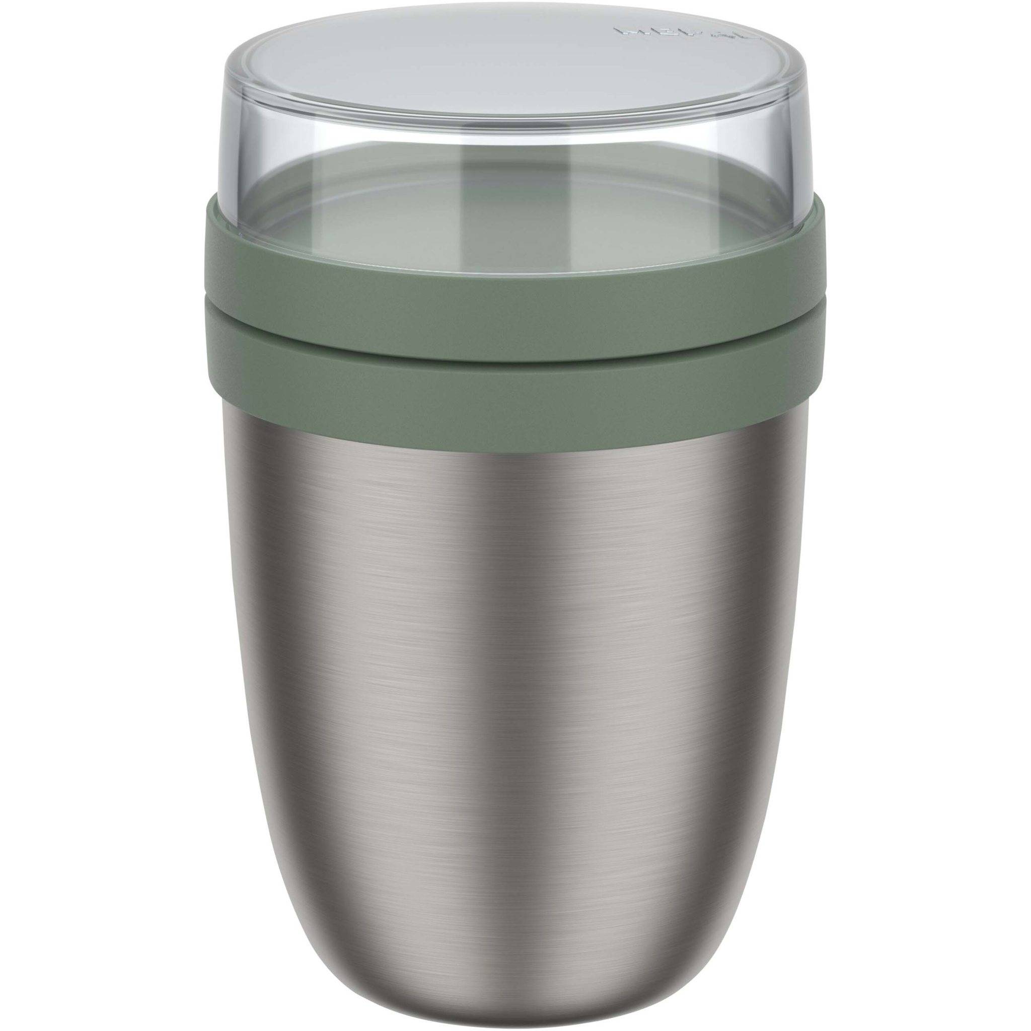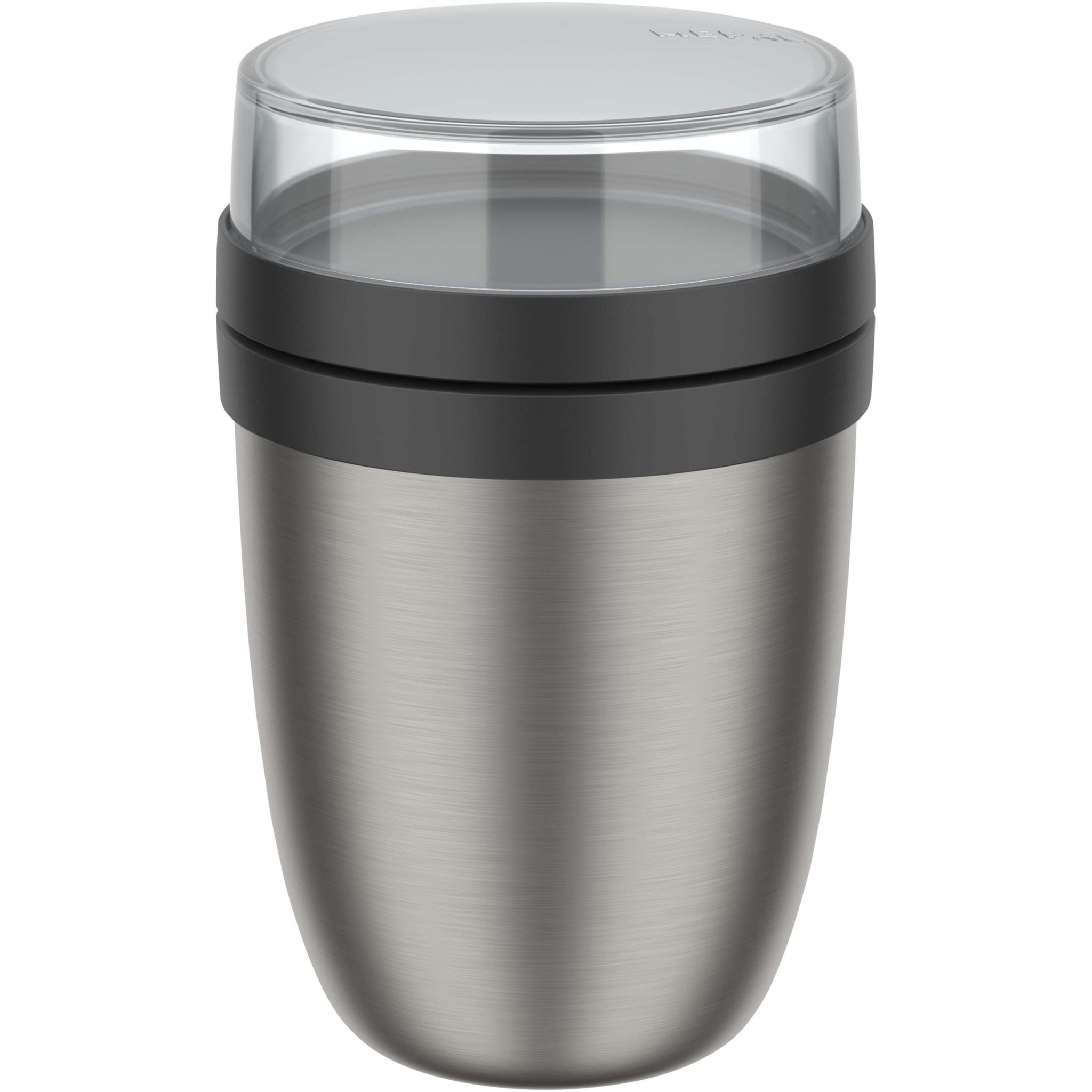 Герметичный пищевой контейнер с двумя раздельными отделениями, позволяющими хранить различные продукты отдельно друг от друга. Оба контейнера имеют отдельную крышку, чтобы ингредиенты не смешивались. Еда останется горячей в течение 6-8 часов и холодной в течение 12 часов. Объем верхнего прозрачного контейнера составляет 200 мл. Емкость нижнего контейнера составляет 500 мл. Изготовлен из прочного материала, внешняя часть контейнера остается холодной и сухой. Рекомендуется ручная мойка. Пластиковые части крышки можно мыть в посудомоечной машине.
