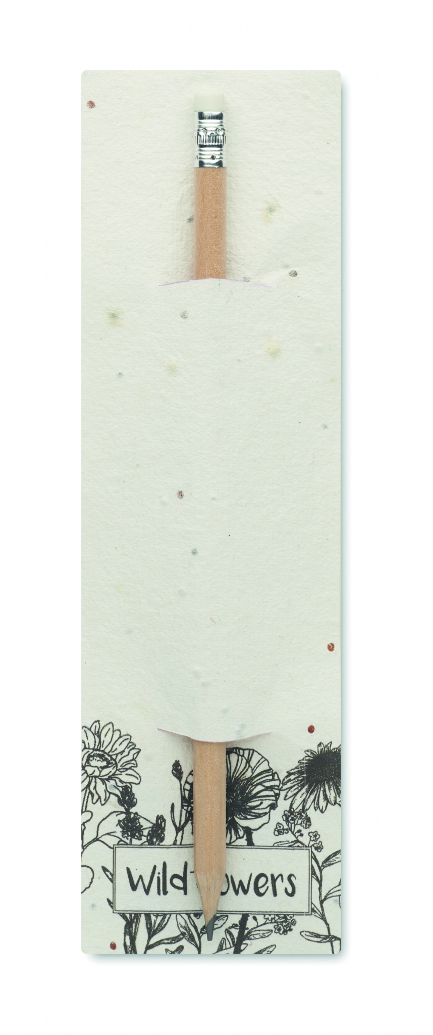Карандаш из натурального дерева с ластиком. Поставляется в бумажном конверте с семенами (полевые цветы).
