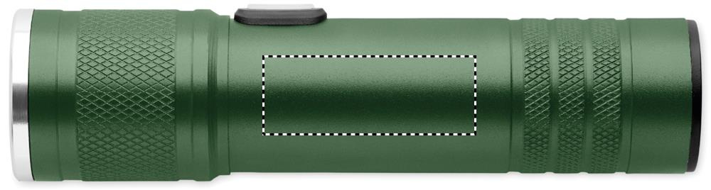 Rechargeable and expandable COB light torch in recycled aluminium. 100 lumen with 3 light settings and zoom function. Built-in 800 mAh rechargeable battery. Charging cable included.