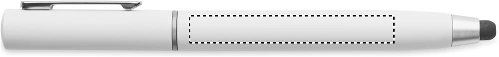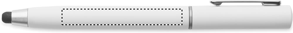 Пластиковая шариковая ручка со стилусом. Имеет набор для чистки беспроводных наушников (TWS): металлическое перо, губка и щеточка. Синие чернила.