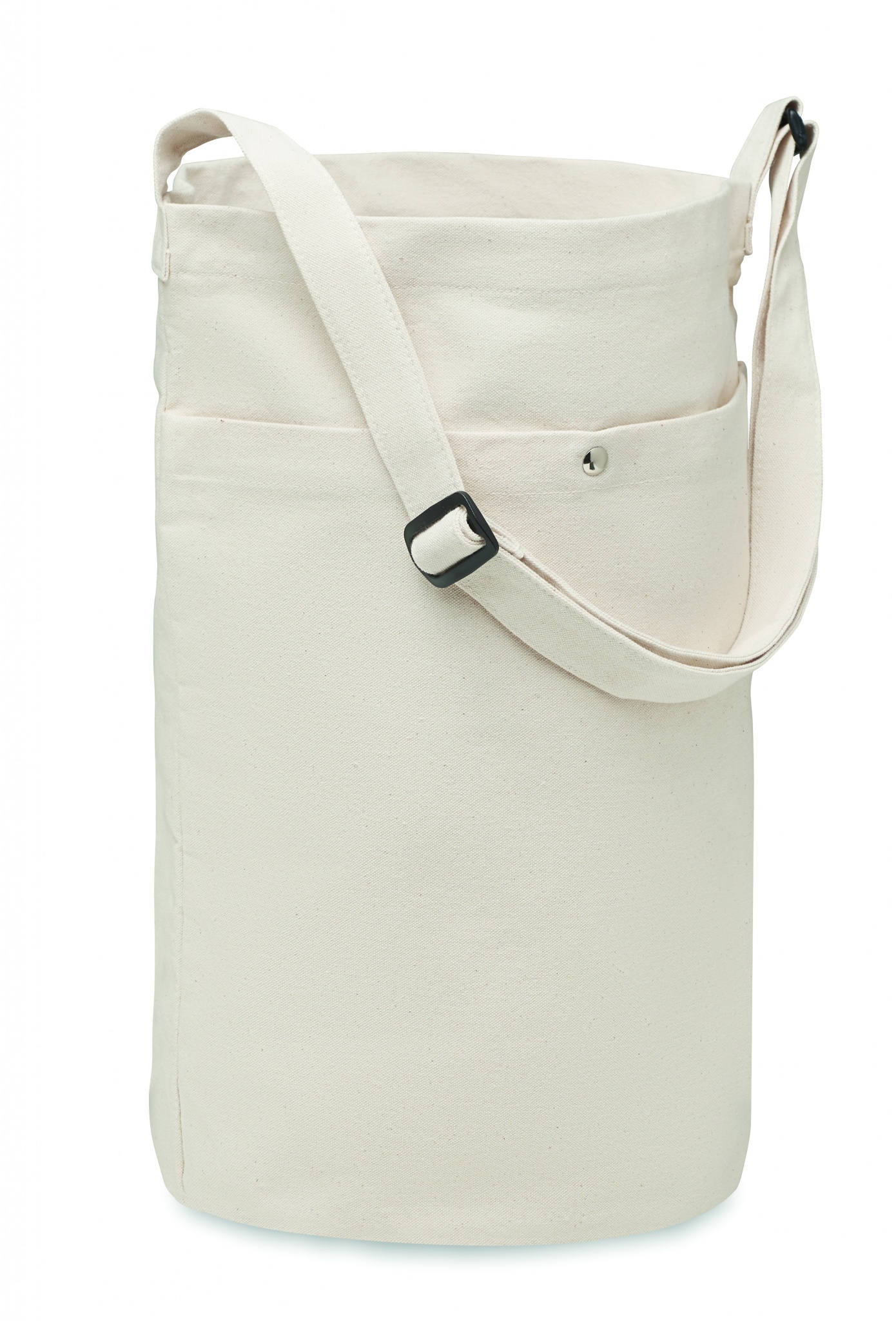 Холщовая сумка на длинном регулируемом плечевом ремне с большим передним карманом на застежке. Есть внутренний карман. 270 гр/м².