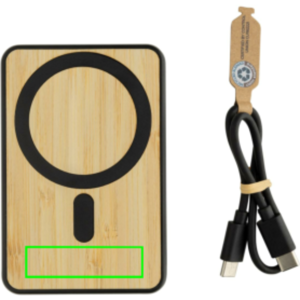 Лого трейд бизнес-подарки фото: Zen RCS rplastic 5000 мАч 5 Вт магнитный бамбуковый внешний аккумулятор