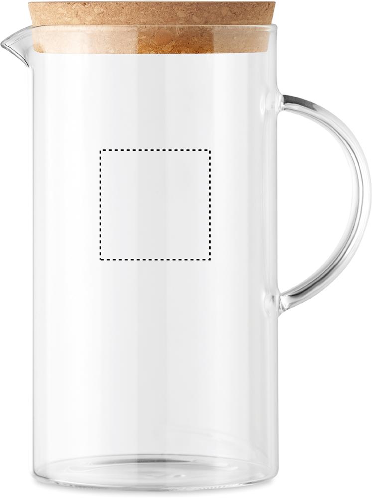 Karaff i borosilikatglas med korklock. Servera färskgjord juice, saft, vatten eller andra drycker i denna glaskanna. Eftersom det är tillverkat av borosilikatglas tål den varm eller kall dryck. Korklocket ger karaffen ett naturligt utseende. Volym: 1L.