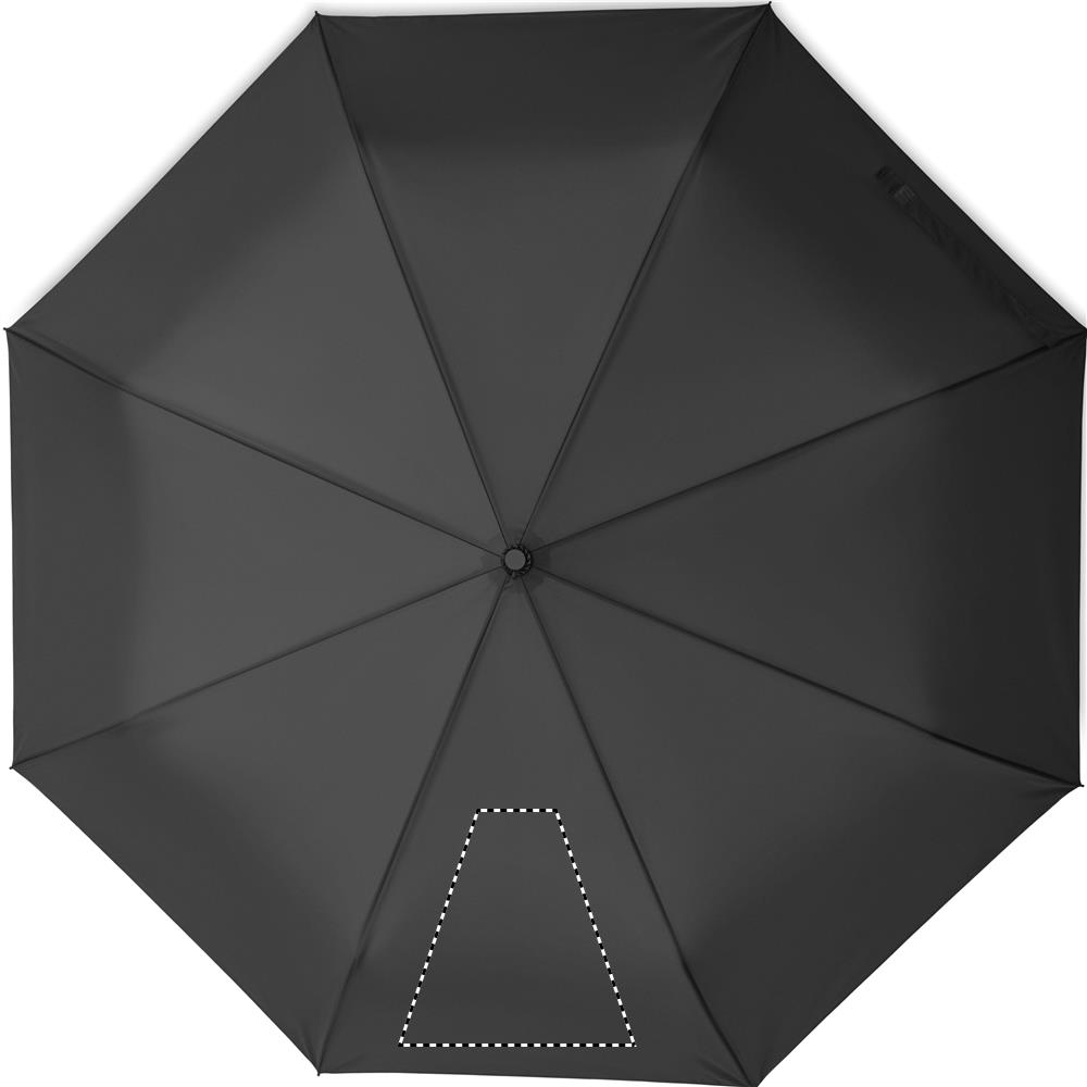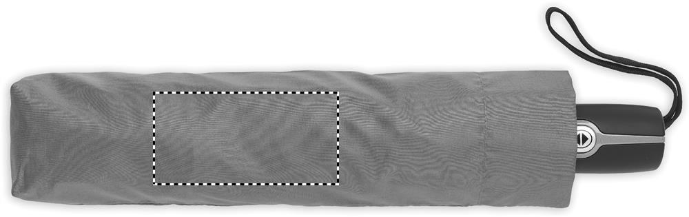 27 tums stormsäkert kompaktparaply med automatisk öppning/stängning. 190T pongee-tyg, svartpläterat 3-delat stålskaft. Glasfiberribbor. Svart PP-handtag med knapp. Med matchande fodral.