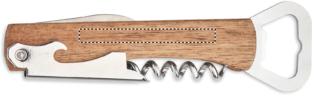 3 i 1 kapsyl- & vinöppnare i akacia. Den innehåller en korkskruv, 2 kapsylöppnare och en folieskärare.
