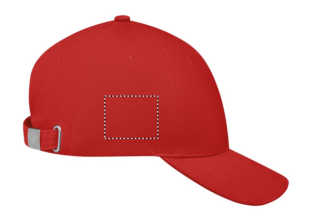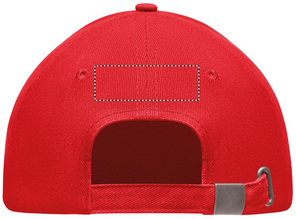 Baseballkeps med 5 paneler i kraftig borstad twill bomull 260 g/m2 med silverstålspänne. 4 broderade öglor i matchande färg. Storlek 7 1/4.
