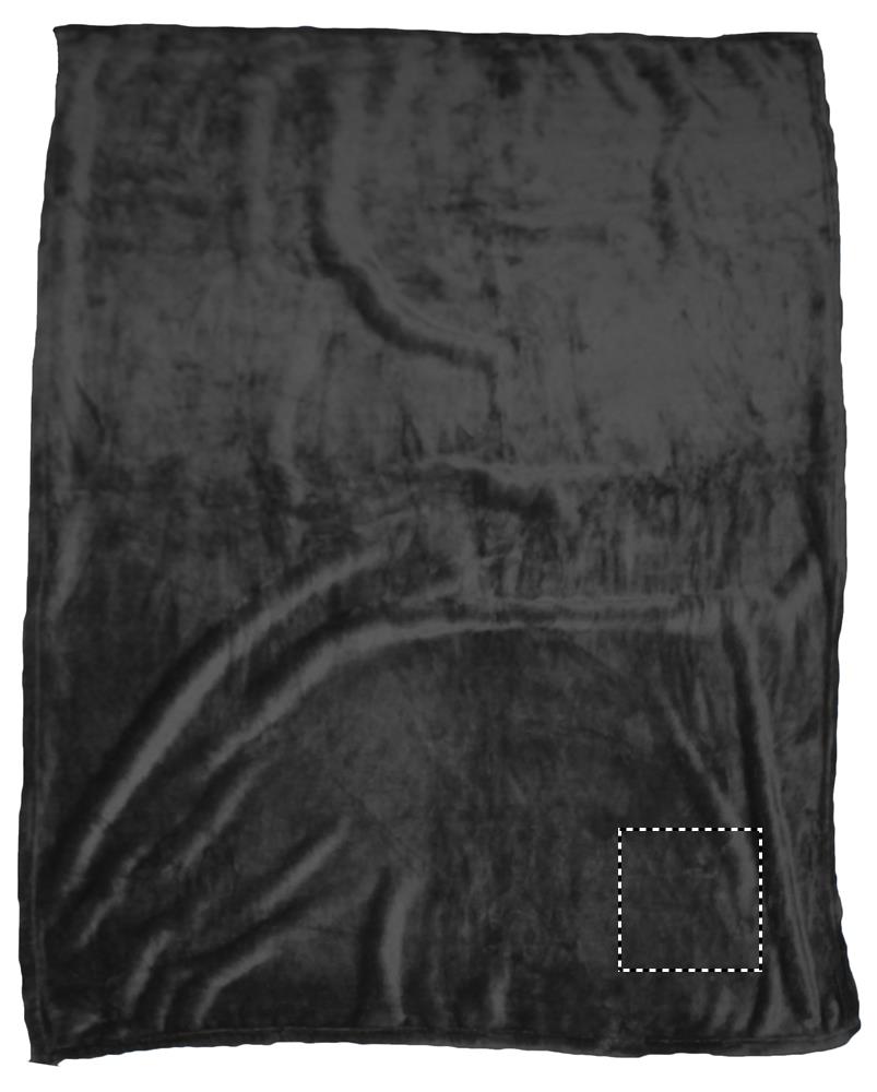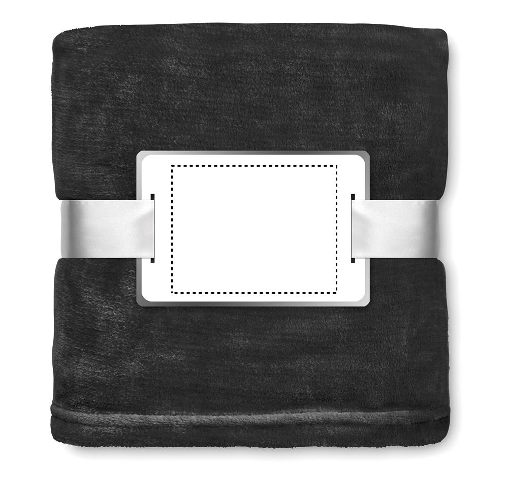 Fleece filt i flanell 280 g/m2. Inbunden i satinband med en yta för märkning. Pläden har en väldigt mjuk och len taktilkänsla.