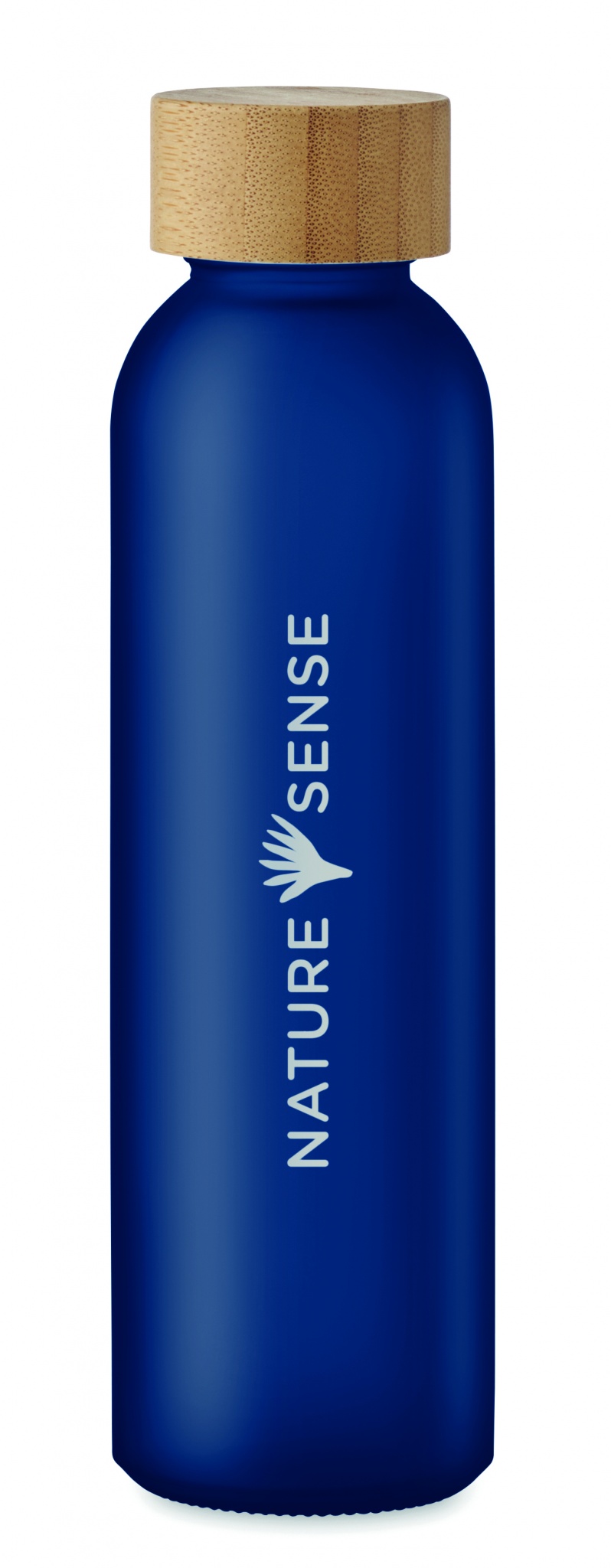 Glasflaska med matt yta och lock av bambu. Läcker inte. Volym: 500 ml.