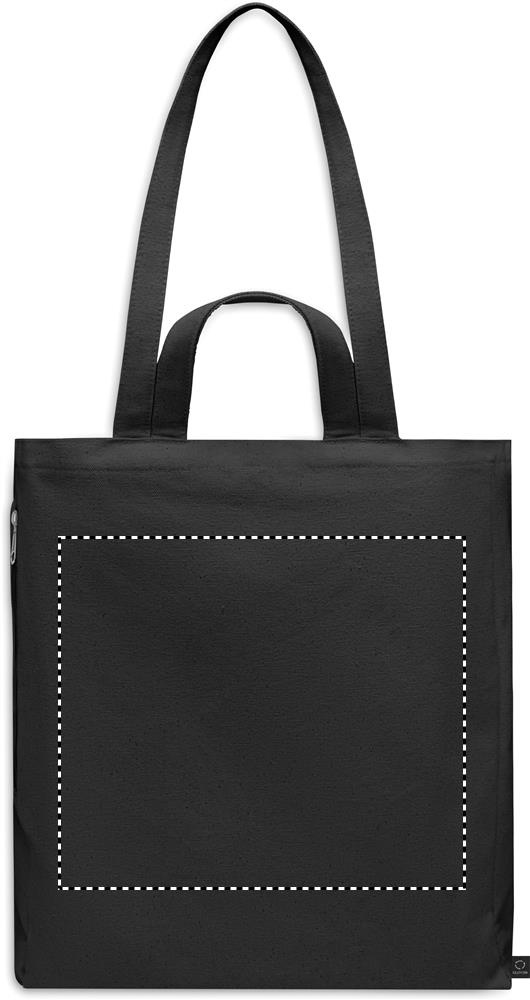 Tygkasse eller strandväska av återvunnen polycotton (70 % återvunnen bomull, 30 % återvunnen polyester) med korta handtag. Den har en sidoficka med dragkedja.380 gr/m².