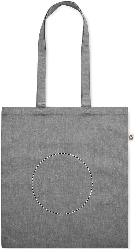 Tygkassae i återvunnen bomull (80 % återvunnen bomull, 20 % bomull) med långa handtag. 140 gr/m².