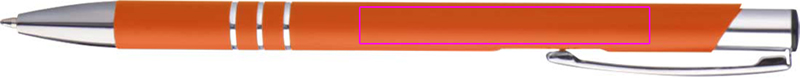 Smal metallkulpenna med gummifinish och blå skrivplastpåfyllning. Din logotyp kommer att graveras under klämman.