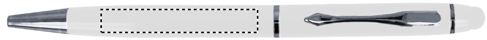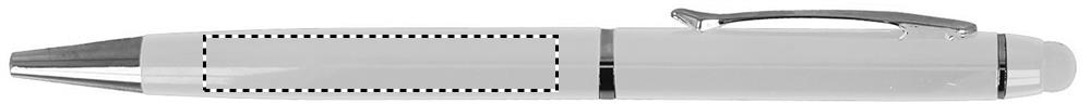 Kulspetspenna i aluminium med touch screen topp. Blått bläck. Presentkartong i papp.