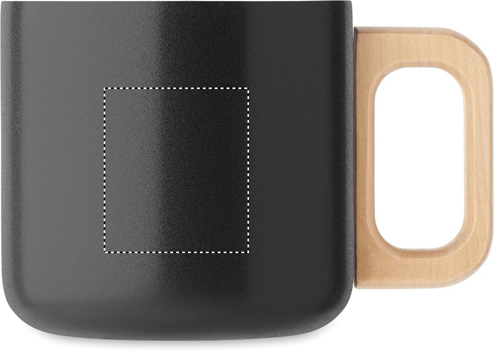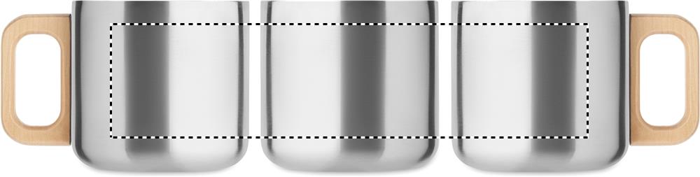 Mugg med dubbelvägg i återvunnet rostfritt stål (90% återvunnet rostfritt stål och 10% rostfritt stål) mugg med trähandtag. Volym: 350 ml.