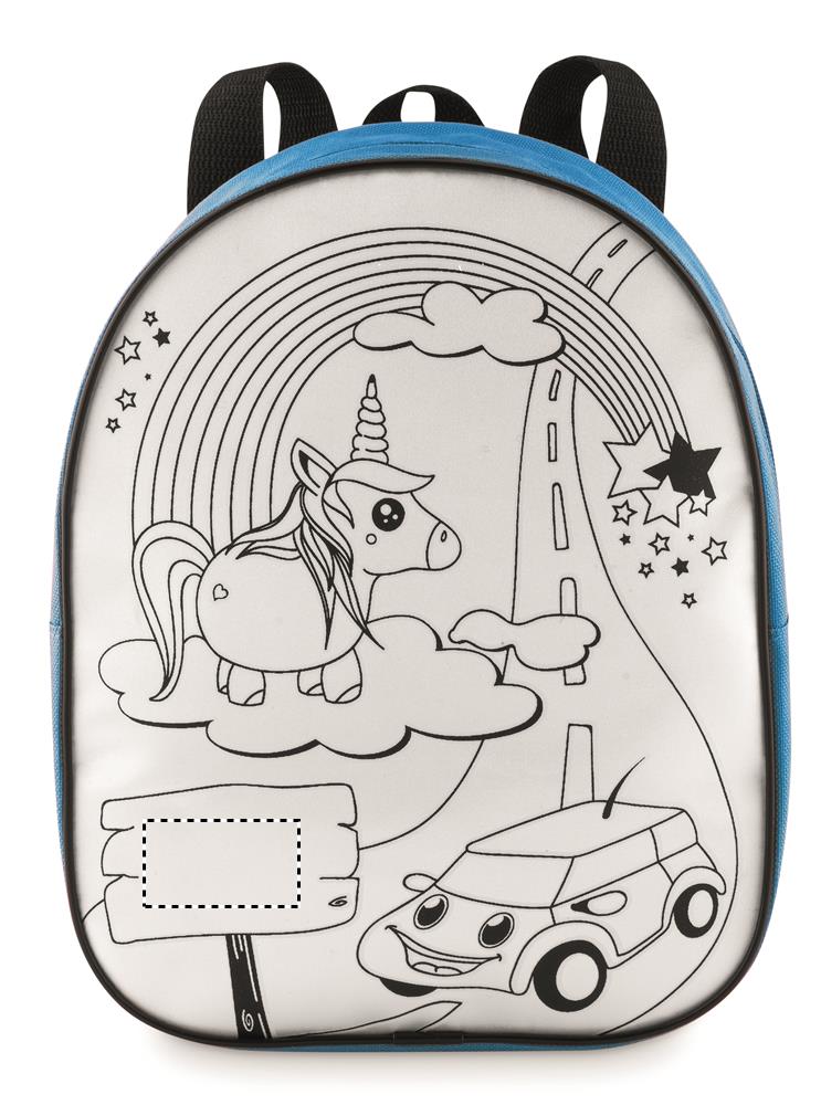 Ryggsäck för barn med 5 st pennor för att färglägga motivet på ryggsäcken. Material 600D polyester.