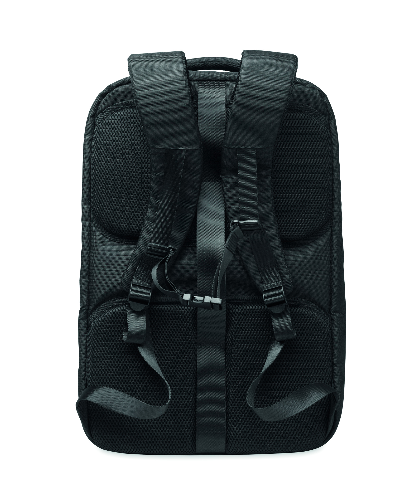 Stor 17-tums dataryggsäck för laptop i 600D RPET polyester. Har flera fack som ett huvudfack för kläder, två vadderade fack för laptop och surfplatta med mera. Vadderad ryggpanel, axelrem och handtag.