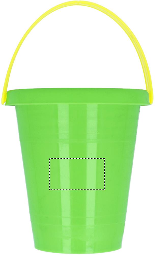 Strandset för barn, innehåller en hink, spade, kratta och 2 st formar för att göra fina sand modeller. Material: PP.