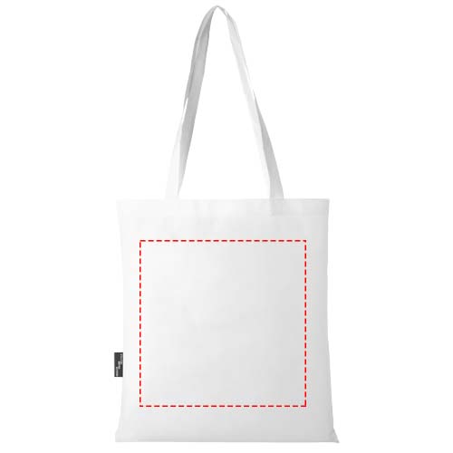 Den stora tygväskan Zeus är tillverkad av slitstark och rivtålig GRS-återvunnen RPET och är ett perfekt och mer hållbart alternativ för mässor eller konferenser. Den tunna designen gör den till en elegant modell som passar för lättare föremål som en anteckningsbok och en penna. Handtagen är 29 cm långa och därför är väskan lätt att bära över axeln. Klarar upp till 5 kg vikt.